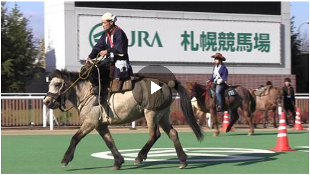 かつては側対歩は「じみち」と呼ばれ、道南では側対歩とスピード(時速25~30㎞)を競う「じみちレース」が盛んに行われていた。現代でもモンゴルではこのようなレースが開催されていて大変人気だそうです。
